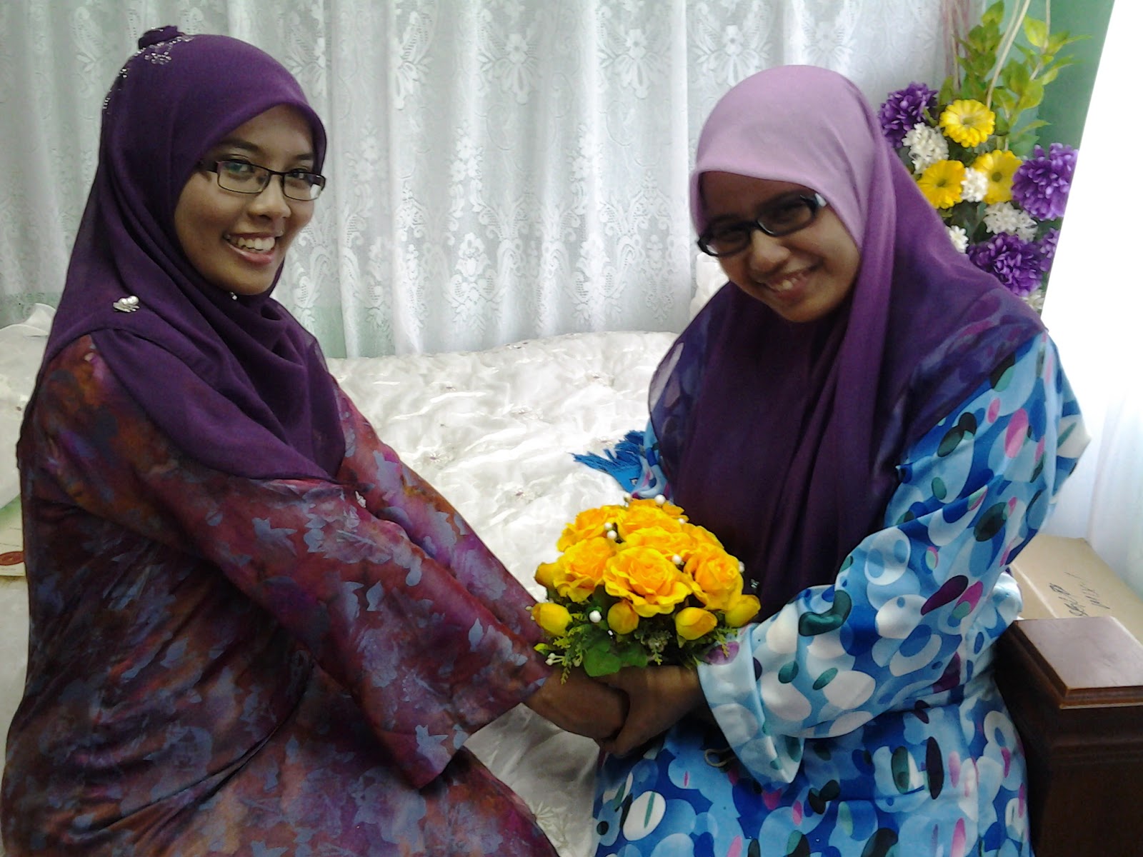 Inilah Helwa (pakai tudung ungu) dan saya (tudung coklat)